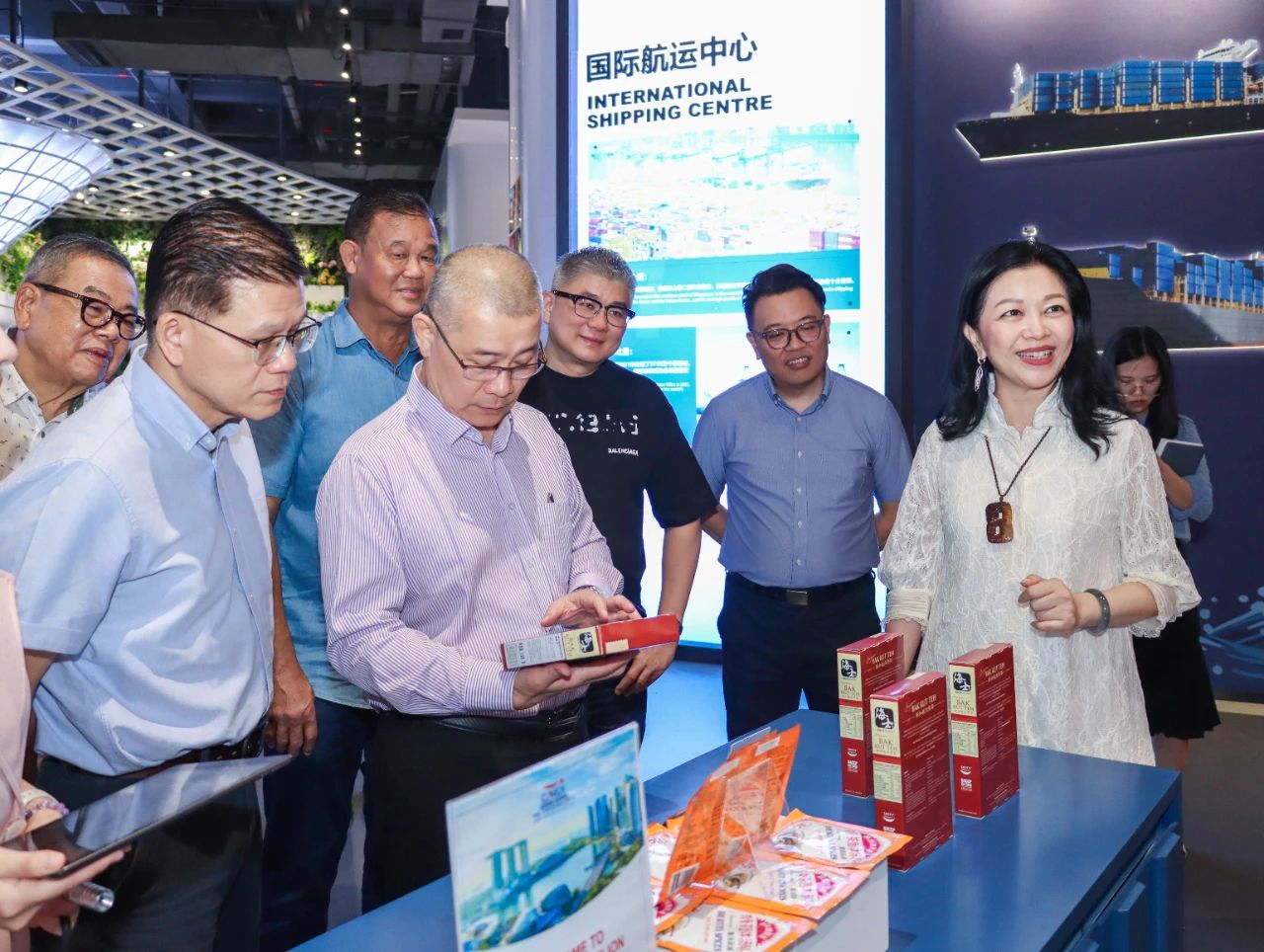 廣西新中產(chǎn)業(yè)投資有限公司、中國—東盟特色商品匯聚中心董事長(cháng)趙海燕熱情接待了考察團。在匯聚中心,考察團認真了解了項目的運營(yíng)理念。其中,各主題展館以各國代表建筑及人文風(fēng)俗元素穿插展示當地特色商品的做法令人耳目一新。他們表示,近兩年從多方渠道頻頻聽(tīng)聞匯聚中心,如今置身現場(chǎng)更覺(jué)震撼,尤其是線(xiàn)上數字化平臺+線(xiàn)下展館沉浸式商貿體驗相結合的方式非常新穎。